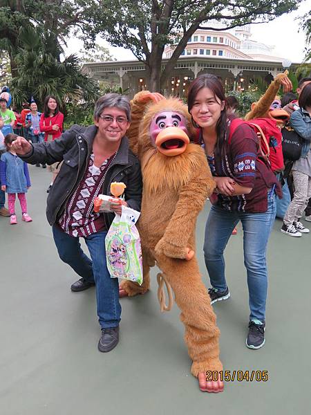 (拿著小叮噹跟迪士尼人物拍照看起來也是一片和諧)